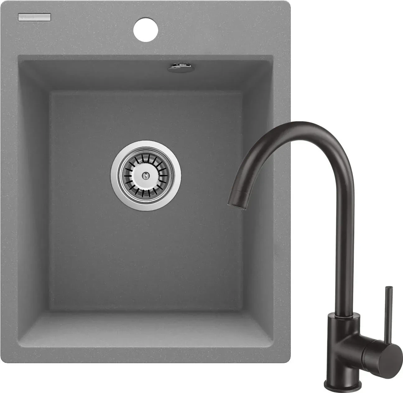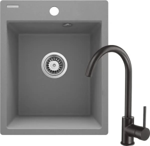 Deante Corio Zlewozmywak granitowy z baterią 1-komorowy, szary metalik, ZRCBS103