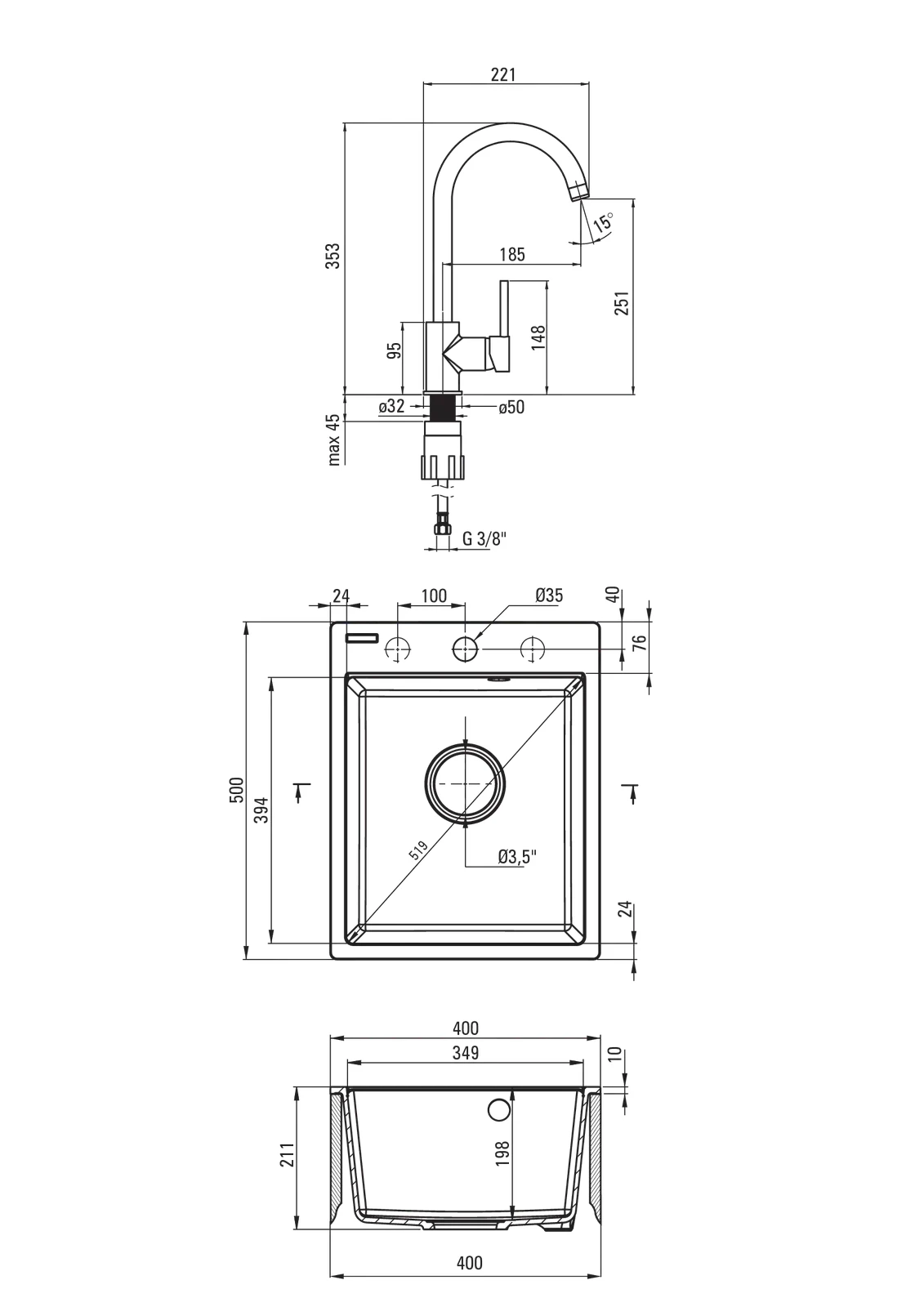 Deante Corio Zlewozmywak granitowy z baterią 1 – dane techniczne i specyfikacja