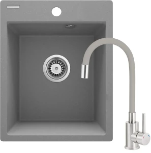 Deante Corio Zlewozmywak granitowy z baterią 1-komorowy, szary metalik, ZRCPS103