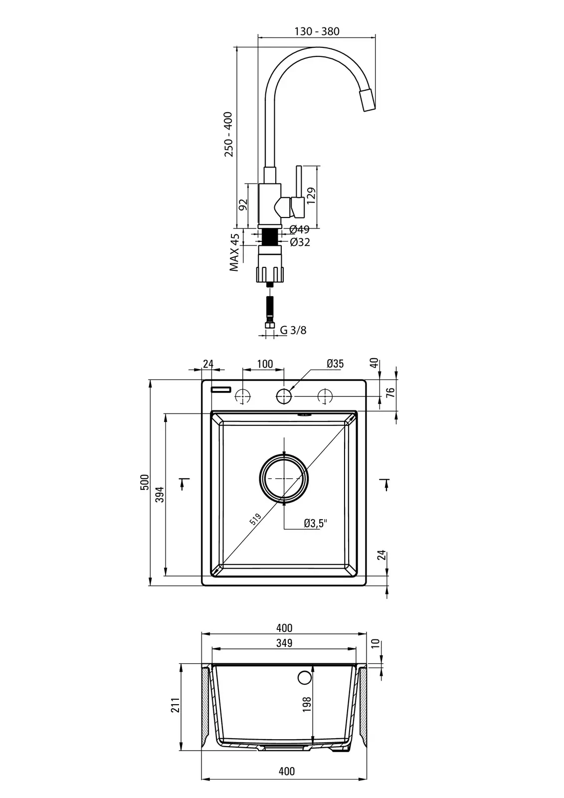 – Minimalna szerokość szafki (mm): 400
