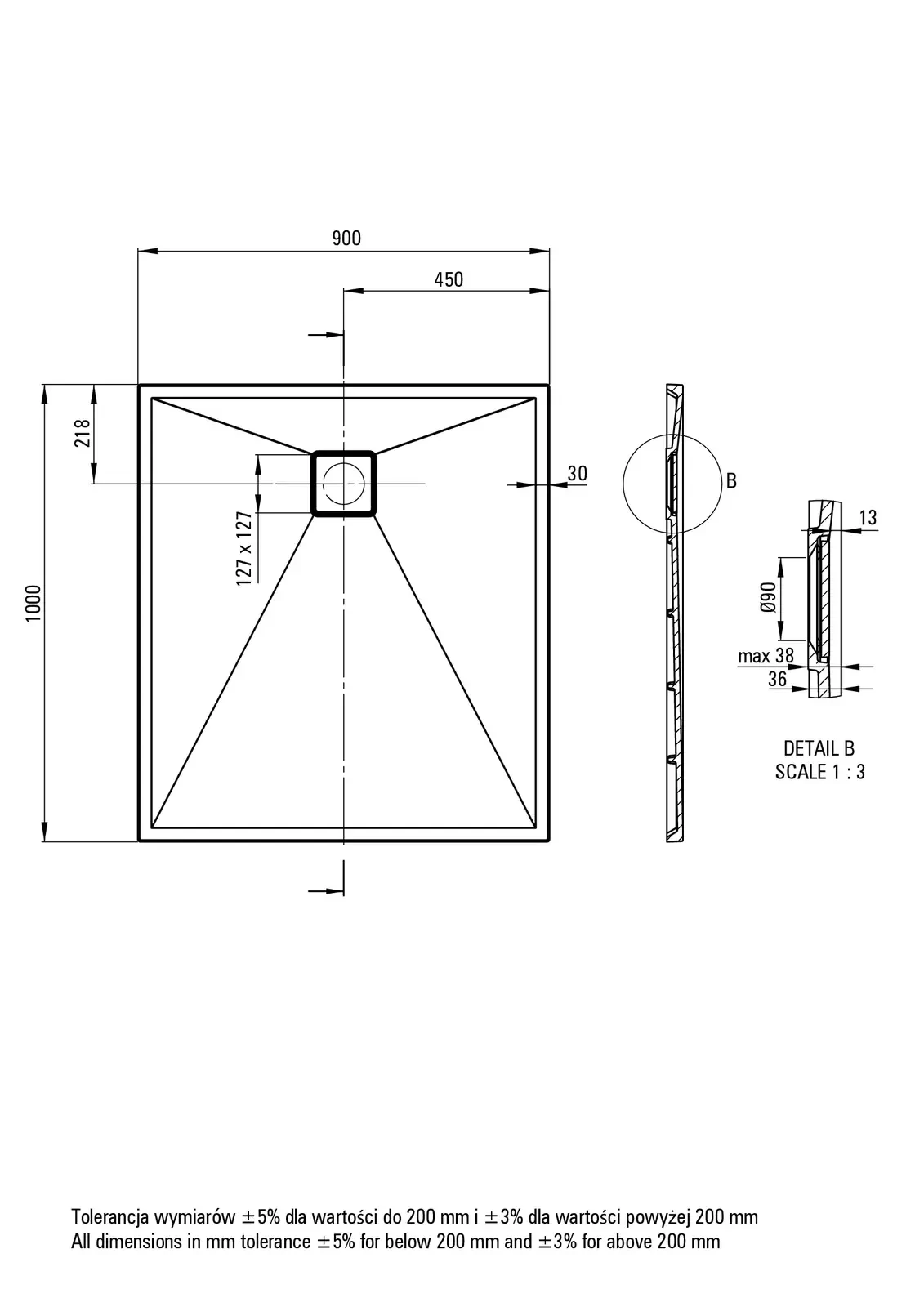 Deante Correo Brodzik granitowy prostokątny 100x90 cm – dane techniczne i specyfikacja