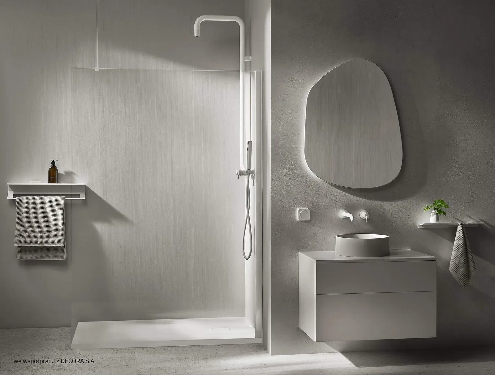 Neutralna forma wpisuje się w różne style aranżacji – od minimalistycznych po klasyczne. Wykończenie alabaster podkreśla estetykę i ułatwia dopasowanie.