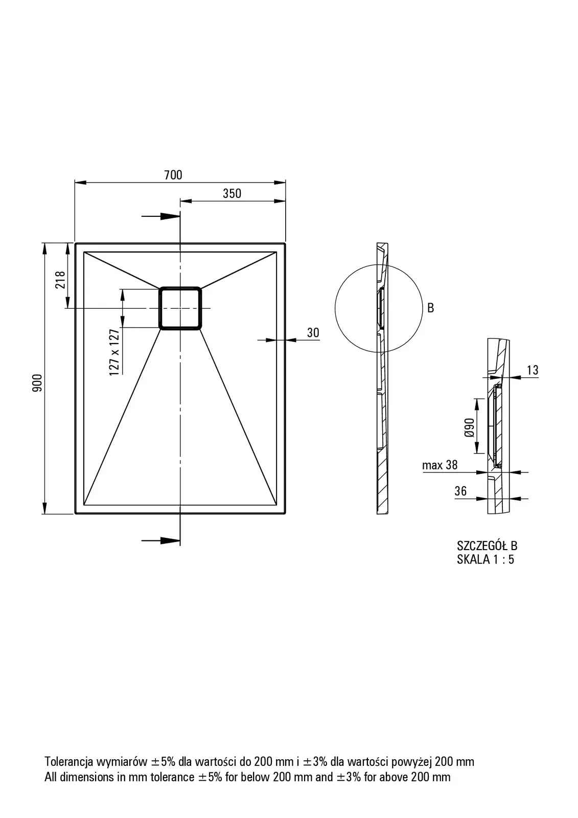Brodzik granitowy prostokątny 90x70 cm Deante – trwałość materiałów i gwarancja producenta