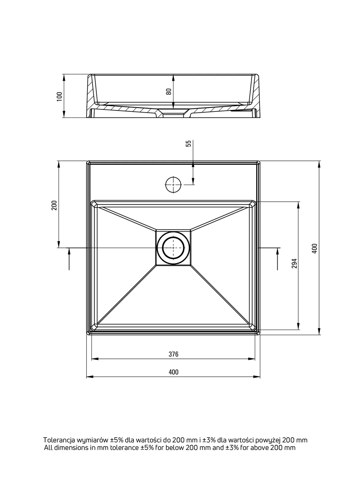 Deante Correo Umywalka granitowa nablatowa z miejscem na baterię - 400x400 mm – CQR_TU4S
