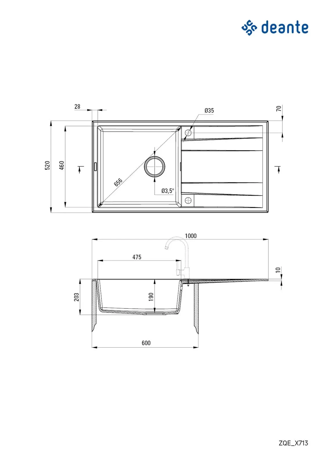 Deante Eridan Zlewozmywak granitowy 1 – dane techniczne i specyfikacja