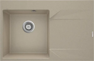 Zlewozmywak w kolorze piaskowym to idealna propozycja do kuchni w stylu śródziemnomorskim lub boho. Powierzchnia granitowa o zwiększonej odporności na zarysowania i zmiany temperatury została wzbogacona jonami srebra. Dodatkowo hydrofobowa struktura zapobiega osadzaniu się kropli wody. Model wyposażony w prawostronny ociekacz oraz syfon Space-Saver, który oszczędza miejsce pod zlewem, umożliwiając łatwiejsze zagospodarowanie szafki.