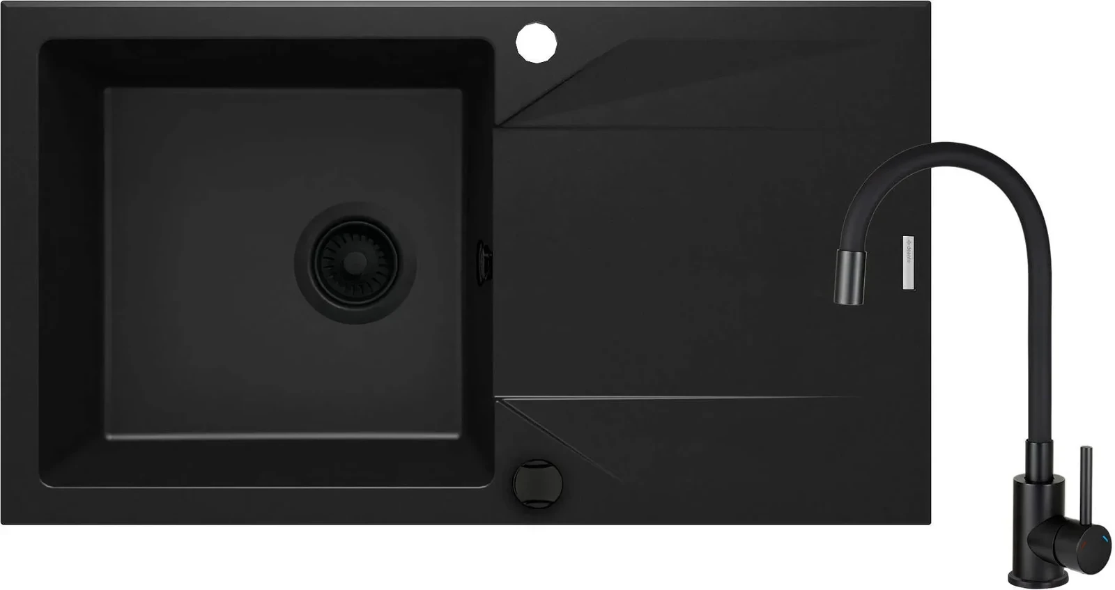 Deante Evora Zlewozmywak granitowy z baterią 1-komorowy z ociekaczem, nero, ZQJJN113
