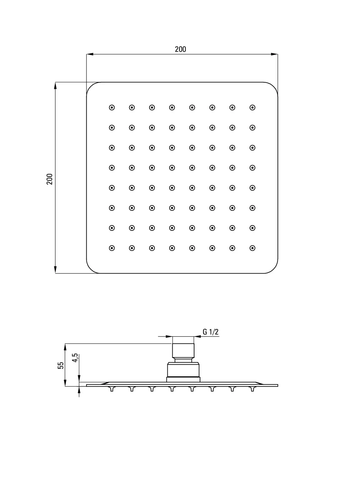 Deante Floks Głowica prysznicowa stalowa - 200x200 mm – NAC_005K
