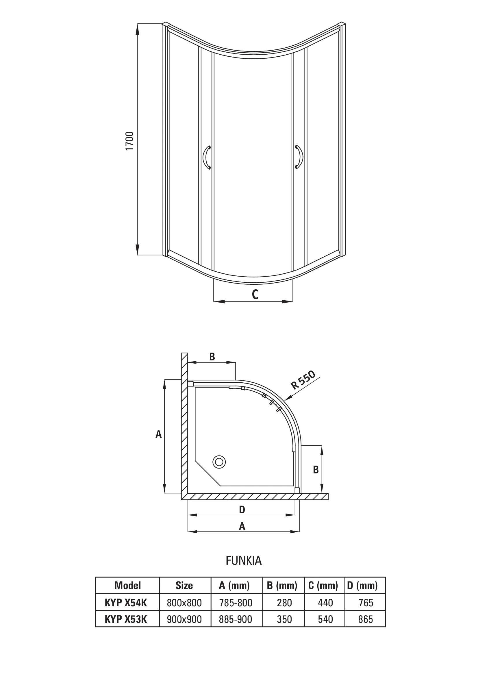 Deante Funkia Kabina prysznicowa półokrągła 80x80 cm – dane techniczne i specyfikacja