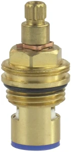 Głowica ceramiczna to trwały produkt, który zapewnia szczelność i bezawaryjność baterii. Powierzchnia jej jest gładka, dzięki czemu zapobiega osadzaniu się kamienia. Kąt obrotu głowicy wynosi 90°, co sprawia, że szybko się otwiera i zamyka. Wykonana jest z mosiądzu, a czpień montażowy posiada 15 klinów. Produkt przeznaczony jest do baterii dwuuchwytowej, do wody zimnej.