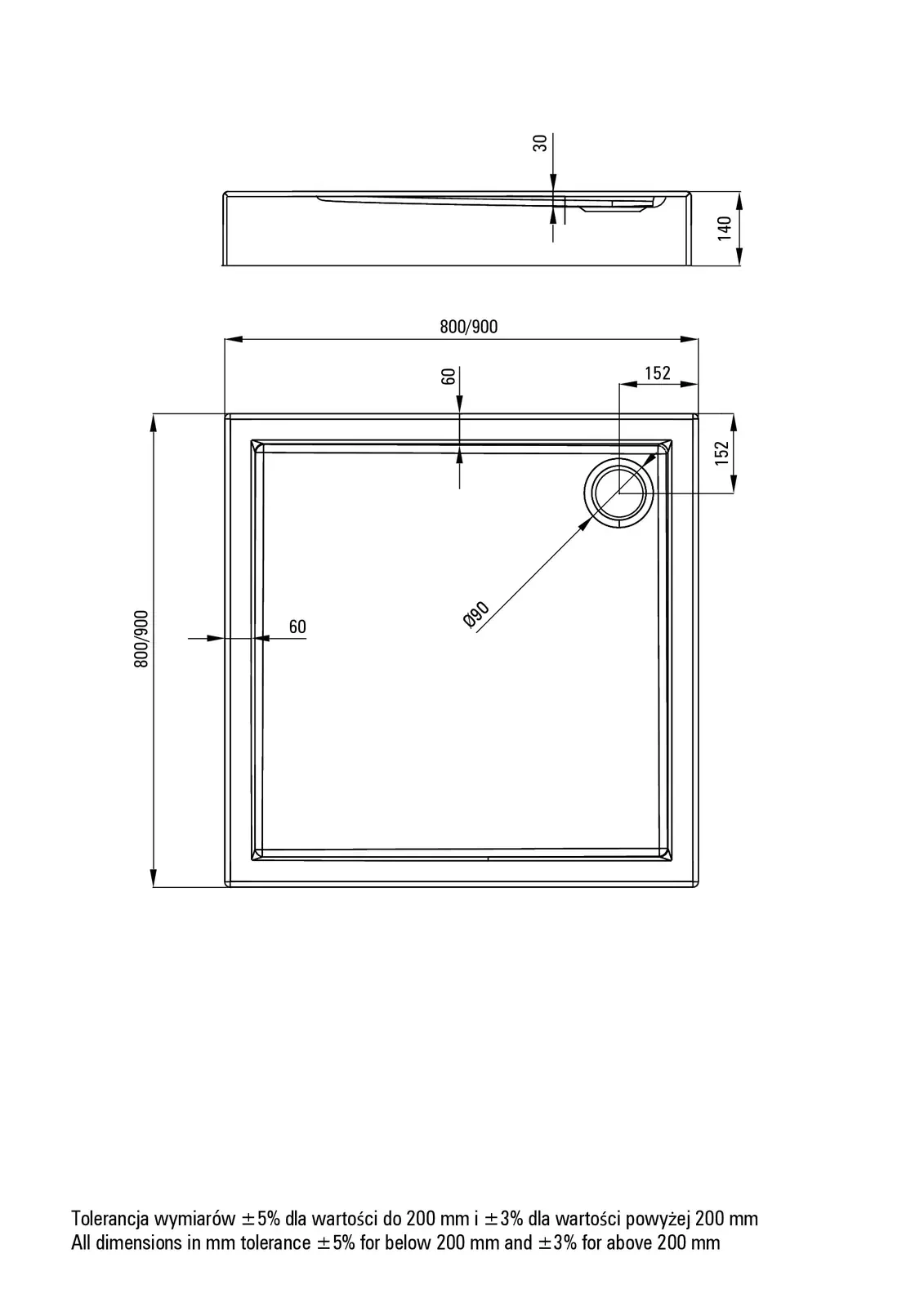 Deante Jasmin Brodzik akrylowy kwadratowy 90 cm – dane techniczne i specyfikacja