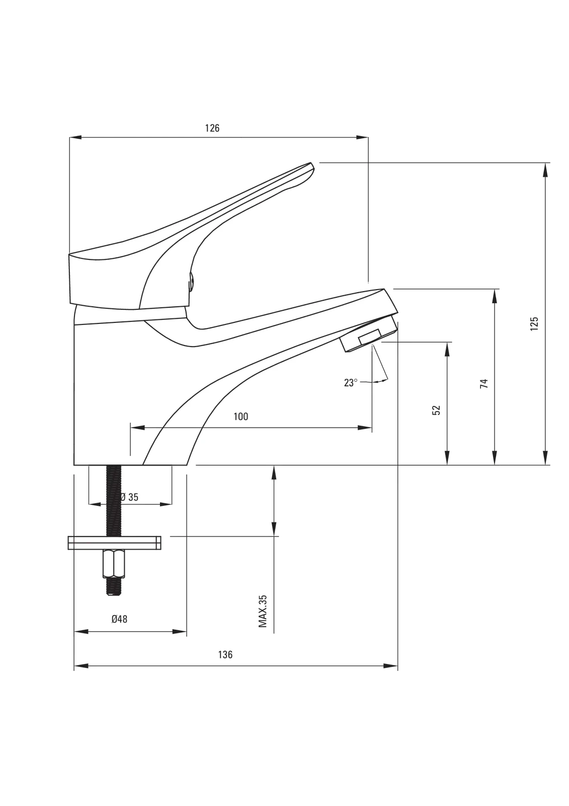 – Długość wylewki: 100