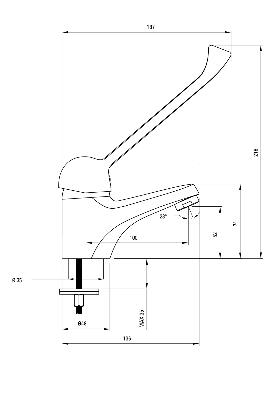 – Długość wylewki: 100