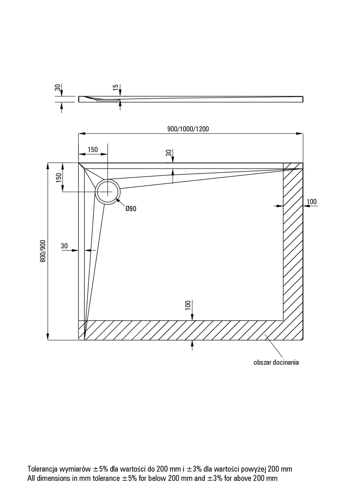 – Sposób instalacji: bezpośrednio na wylewce, na poziomie podłogi, na podparciu materiałem konstrukcyjnym