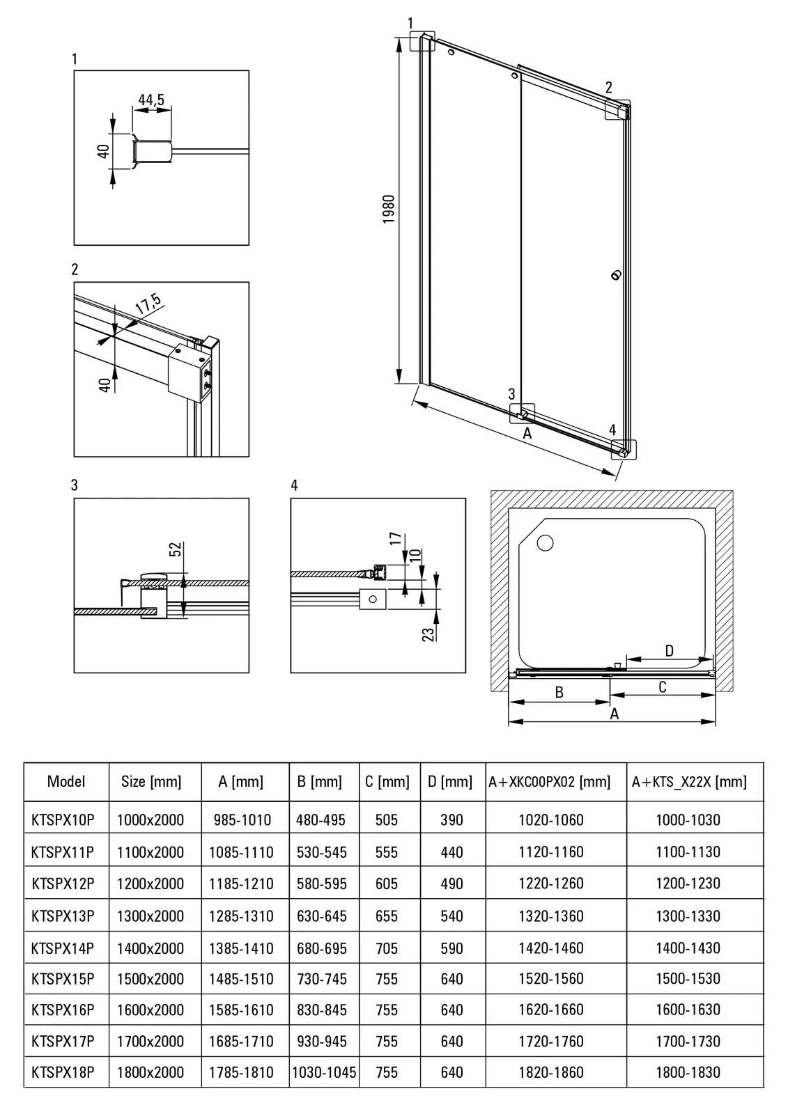 – Sposób instalacji: do kompletowania z walk-in KTS