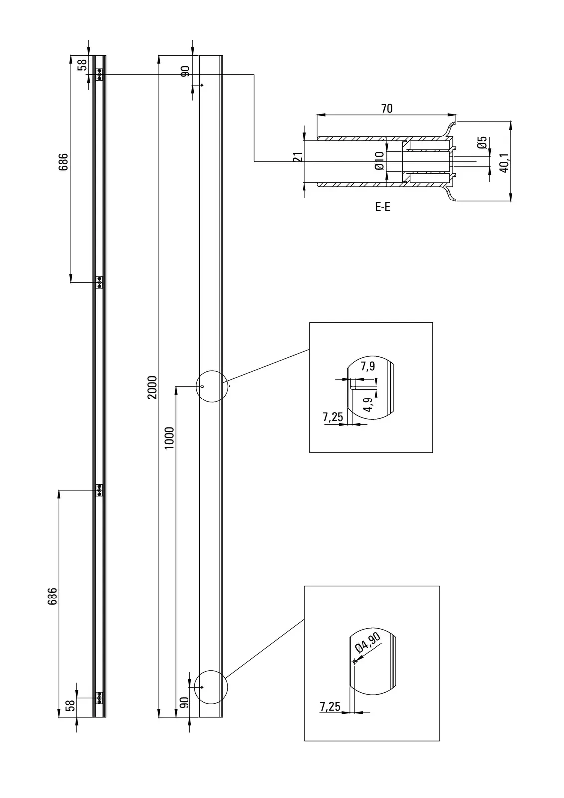 Profil przyścienny ma 7 cm szerokości. Jest szerszy o 3 cm od profilu, który znajduje się w zestawie z drzwiami i ściankami Kerria Plus. Szeroki profil przyścienny zwiększa zakres montażowy kabiny, a przy tym wygląda bardzo estetycznie. Wykończony jest w błyszczącym chromie i doskonale pasuje do systemu Kerria Plus w tym samym wykończeniu.