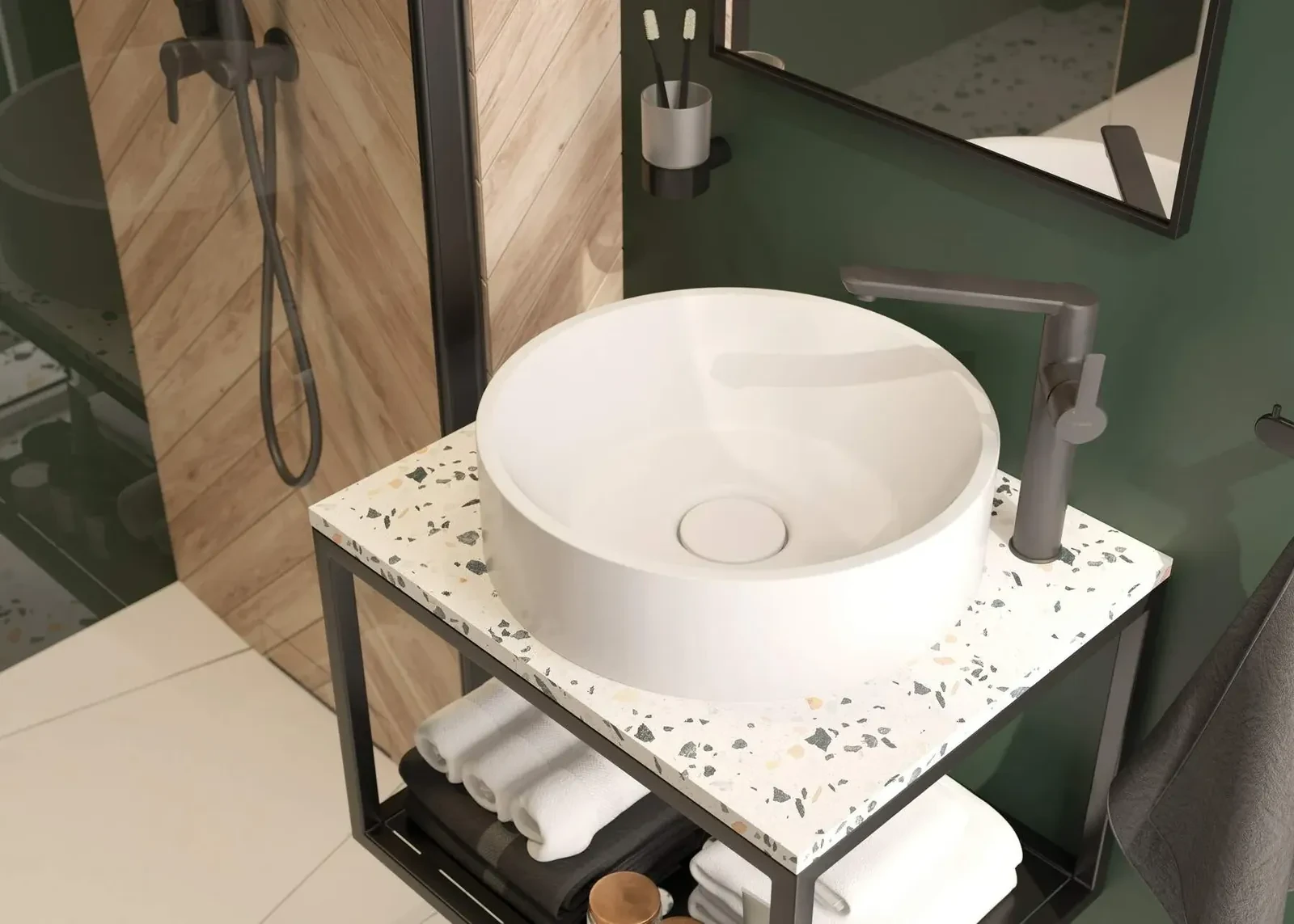 Neutralna forma wpisuje się w różne style aranżacji – od minimalistycznych po klasyczne. Wykończenie nero podkreśla estetykę i ułatwia dopasowanie.