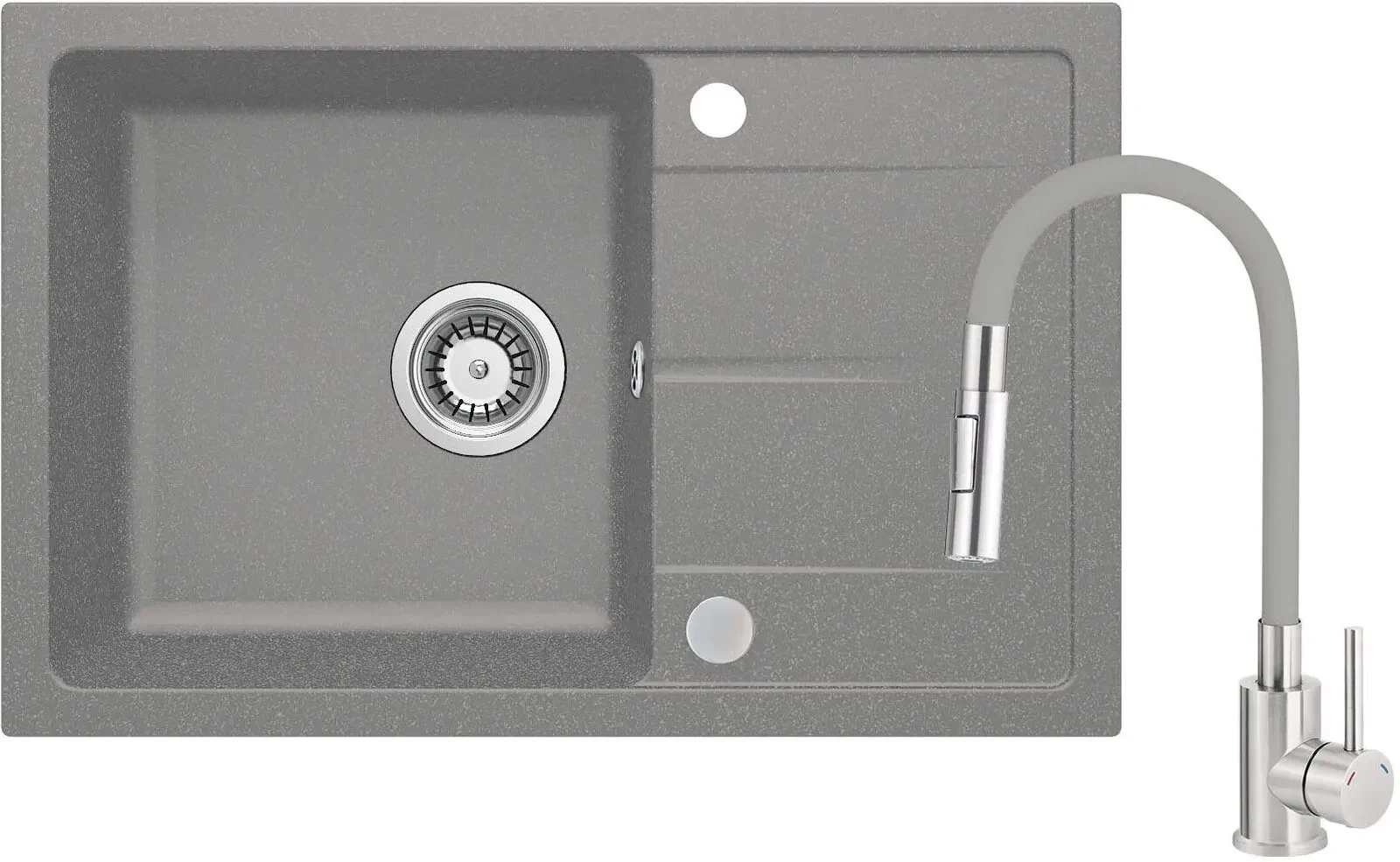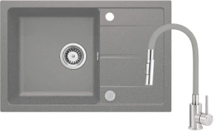 Deante Leda Zlewozmywak granitowy z baterią z giętą wylewką, szary metalik, ZRDGS113