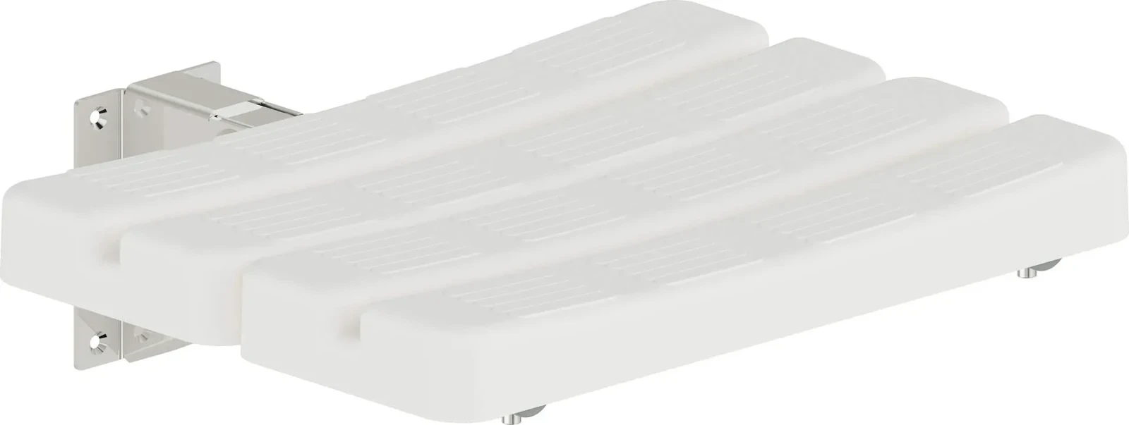 Eleganckie, białe siedzisko prysznicowe z możliwością złożenia. W komplecie zestaw montażowy do twardego podłoża (ściany z pełnej cegły/ betonu). Maksymalny udźwig 150 kg. Produkt jest wyrobem medycznym.
