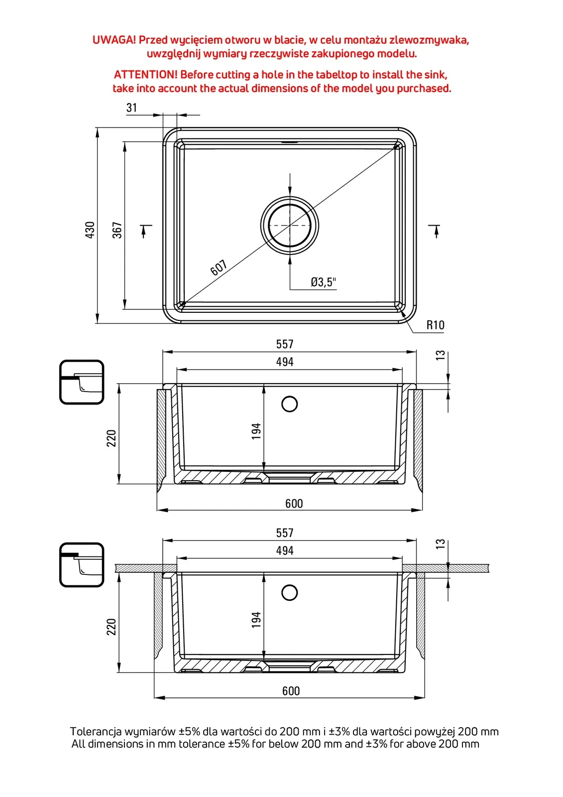 Deante Lumi Zlewozmywak ceramiczny 1 – dane techniczne i specyfikacja