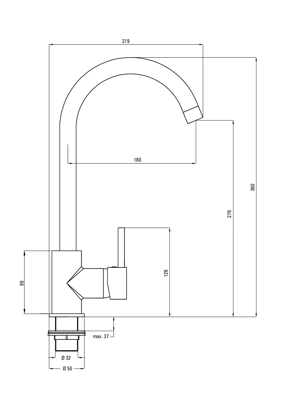 – Długość wylewki: 180