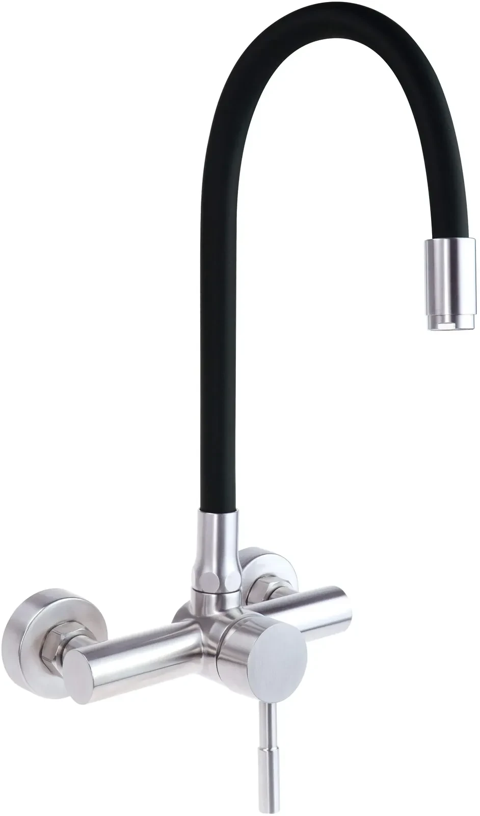 Bateria kuchenna ścienna Luno składa się ze stalowego korpusu oraz giętej wylewki. Mobilność wylewki umożliwia swobodne poruszanie nią w różne strony, co ułatwia mycie naczyń o różnych rozmiarach oraz napełnianie wodą wysokich garnków czy dzbanków. Bateria wyposażona jest w aerator, który napowietrza strumień wody, co pozwala na oszczędność wody i zmniejszenie jej zużycia. Bateria wykończona jest w eleganckim kolorze stali szczotkowanej, co nadaje jej nowoczesny i stylowy wygląd. Szczotkowana stal nie tylko podkreśla estetykę baterii, ale również zapewnia odporność na odciski palców i plamy, co ułatwia jej utrzymanie w czystości.
