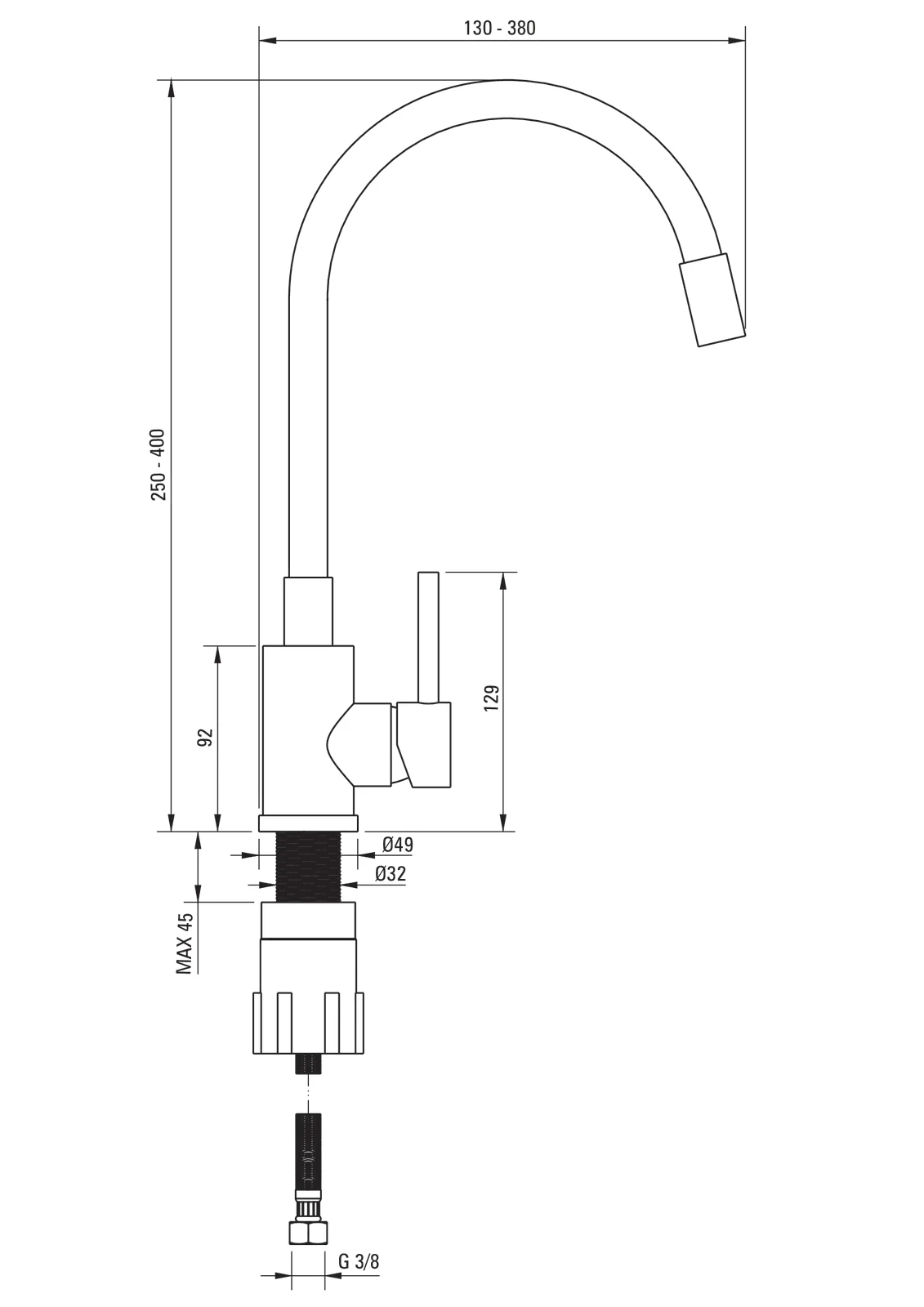 Deante Luno Bateria kuchenna z giętą wylewką – dane techniczne i specyfikacja