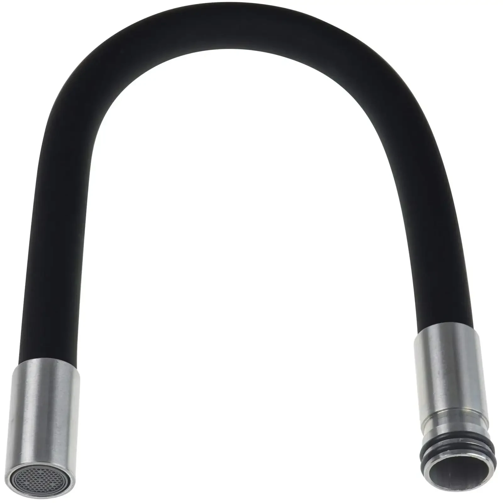 Elastyczna wylewka stanowi część zamienną do kuchennej baterii z serii Luno. Gięta wylewka wyróżnia się dużym zasięgiem i łatwością użytkowania. Dzięki temu można komfortowo napełnić wodą wysokie naczynia czy opłukać owoce i warzywa. Wylewka wyposażona jest w aerator napowietrzający strumień wody. Stalowo-czarny kolor doskonale pasuje do ciemnych granitowych zlewozmywaków.