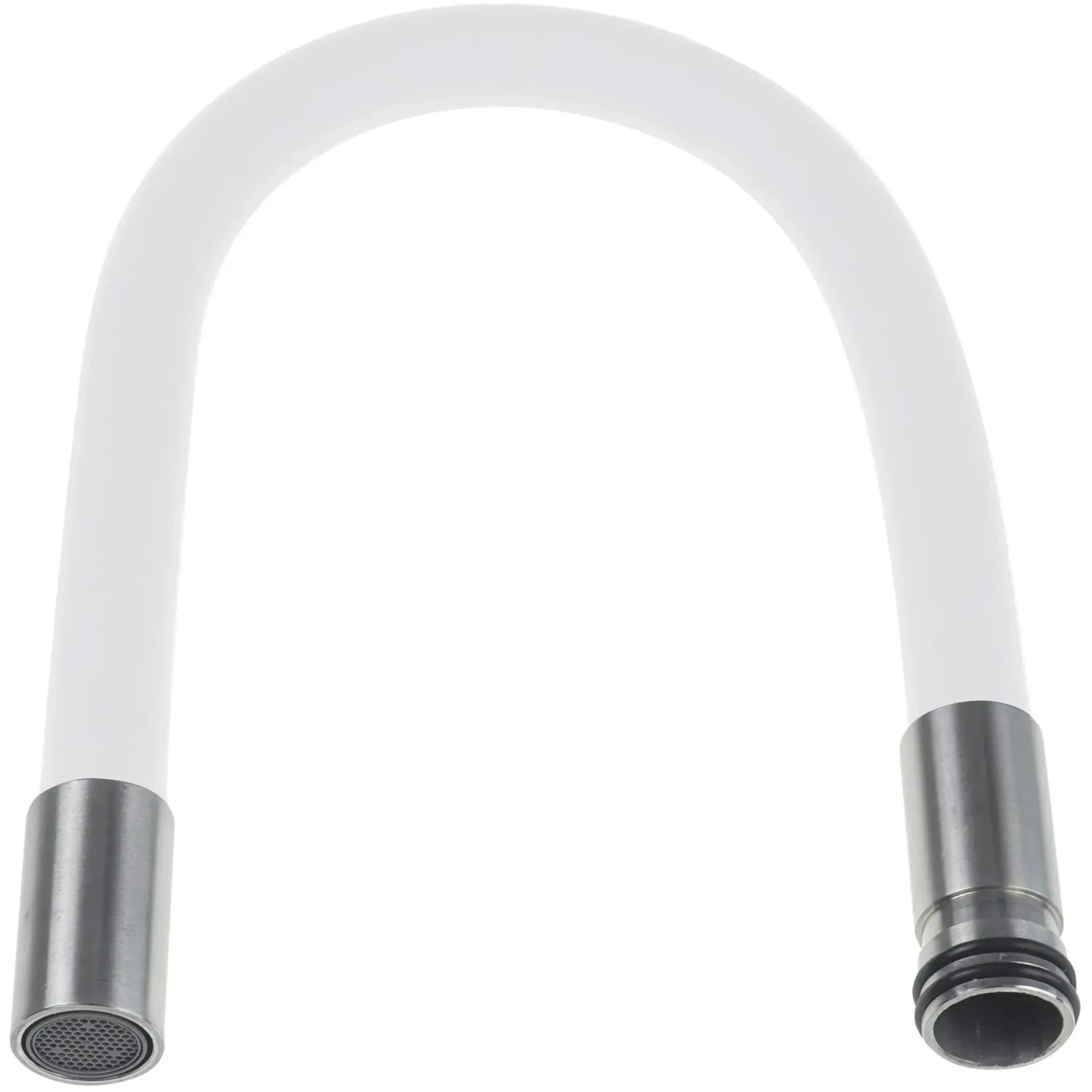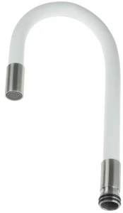 Elastyczna wylewka to część zamienna do kuchennej baterii z serii Luno. Gięta wylewka charakteryzuje się dużym zasięgiem, co znacznie ułatwia napełnienie wodą wysokich naczyń czy też opłukanie warzyw i owoców. Wylewka wyposażona jest w aerator napowietrzający strumień wody. Stalowo-biały kolor doskonale pasuje do granitowych zlewozmywaków w wykończeniu alabaster oraz tych klasycznych, stalowych.