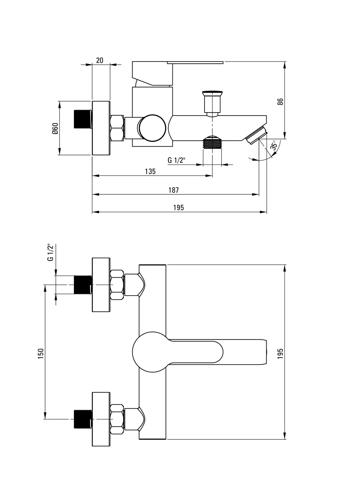 Deante Lupo Bateria wannowa ścienna – BLU_F10N