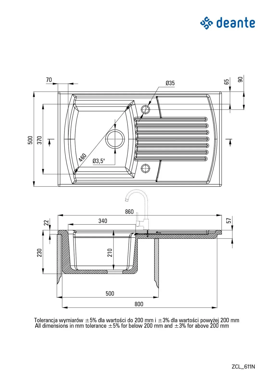 Deante Lusitano Zlewozmywak ceramiczny 1 – dane techniczne i specyfikacja