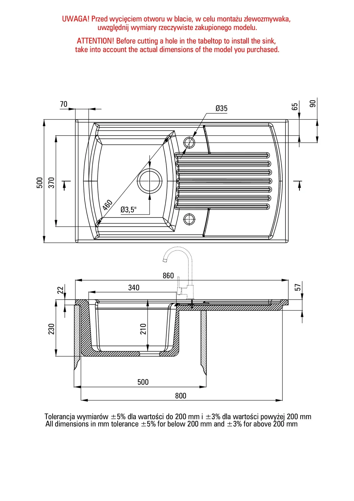 – Minimalna szerokość szafki (mm): 500