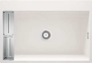Magnetic o długości 760 mm w jasnym kolorze alabaster to elegancka propozycja do każdej nowoczesnej kuchni. Zlew wyposażony w koszyki montowane na magnes na ściance, pozwala na wygodne przechowywanie przyborów kuchennych bez konieczności wiercenia dodatkowych otworów. Granit z właściwościami hydrofobowymi i antyseptycznymi zapewnia łatwość w utrzymaniu czystości oraz wyjątkową trwałość.