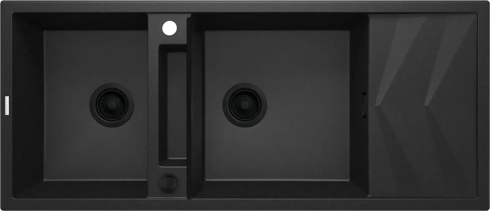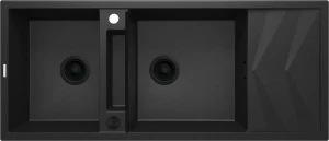 Zlewozmywak Magnetic to wielozadaniowe urządzenie kuchenne. Umieszczona pośrodku półka, oddzielona maskownicą daje dodatkową przestrzeń roboczą. Podwójna komora i duży ociekać gwarantują optymalny komfort pracy w kuchni. Opcjonalnie zlewozmywak można wyposażyć w koszyczki, reling i haczyk. Grafitowe wykończeni zlewu kojarzy się głównie z kuchniami nowoczesnymi. W połączeniu z brązowym lub cimno-szarym blatem wygląda elegancko i niebanalnie.