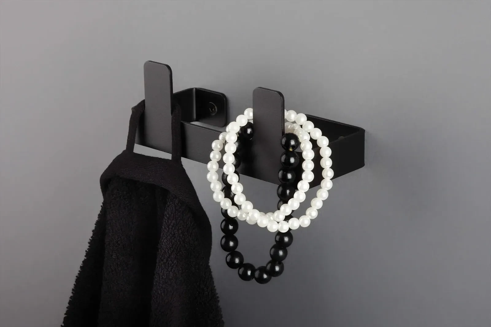 Podwójny haczyk na ręcznik lub szlafrok z wyróżnionej nagrodami kolekcji Mokko to nowoczesne, minimalistyczne, a co za tym idzie proste i funkcjonalne akcesorium, które doskonale odnajdzie się w przestrzeniach współczesnych łazienek i salonów kąpielowych. Wykonany z 2 mm stali uchwyt z dwoma haczykami, poza minimalistycznym designem, ciekawym kształtem i ergonomią, charakteryzuje się także wysoką jakością wykonania, starannym wykończeniem i pięknym odcieniem głębokiej czerni. Satynowoczarne akcesoria z linii Nero wyjątkowo efektownie harmonizują z czarną armaturą, gładkimi kaflami łazienkowymi, drewnianymi czy kamiennymi blatami. Dodatki te świetnie odnajdą się w pomieszczeniach urządzonych w stylu industrialnym, skandynawskim czy minimalistycznym. Kolekcja akcesoriów łazienkowych Mokko autorstwa Kasi Łogwinienko i Michała Łoja została doceniona za jej wzornictwo, technologię wykonania, innowacyjność oraz funkcjonalność i otrzymała nagrodę Diament Meblarstwa 2020, oraz została Finalistą konkursu Dobry Wzór 2020.
