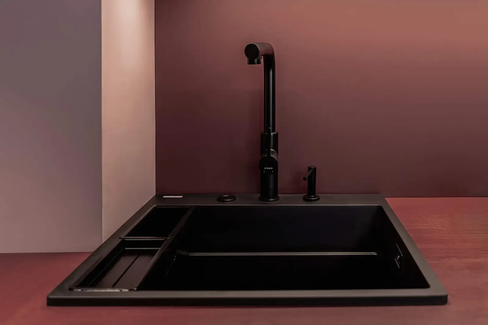 Bateria Momi, wykonana jest z wysokiej jakości stali nierdzewnej. Dzięki wbudowanemu aeratorowi, strumień wody jest napowietrzany, co pozwala zmniejszyć jej zużycie.Funkcjonalna wyciągana wylewka ułatwia codzienną pracę w kuchni, umożliwiając swobodne operowanie wodą, nawet przy myciu dużych naczyń lub trudno dostępnych miejsc. Dodatkowo, słuchawka oferuje dwa tryby pracy: napowietrzony strumień do codziennego mycia oraz deszczowy, idealny do delikatnego płukania warzyw i owoców.Bateria Momi to nie tylko elegancki wygląd, ale także wygoda, która podnosi komfort codziennego użytkowania. Produkt wykończony jest w matowym, czarnym kolorze.