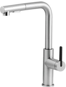 Bateria Momi, wykonana z wysokiej jakości stali nierdzewnej, łączy w sobie estetykę i funkcjonalność. Zintegrowany aerator skutecznie napowietrza strumień wody, jednocześnie zmniejszając jej zużycie. Wyciągana wylewka gwarantuje wygodę podczas codziennych czynności kuchennych, umożliwiając łatwe pokierowanie strumieniem nawet przy zmywaniu dużych naczyń. Dodatkowo, słuchawka posiada dwa tryby strumienia wody: delikatnie napowietrzony, idealny do standardowego mycia, oraz strumień deszczowy, doskonały do płukania warzyw i owoców.Bateria Momi jest doskonałym wyborem do współczesnych kuchni, oferując nie tylko stylowy wygląd, ale również wyjątkowy komfort użytkowania.