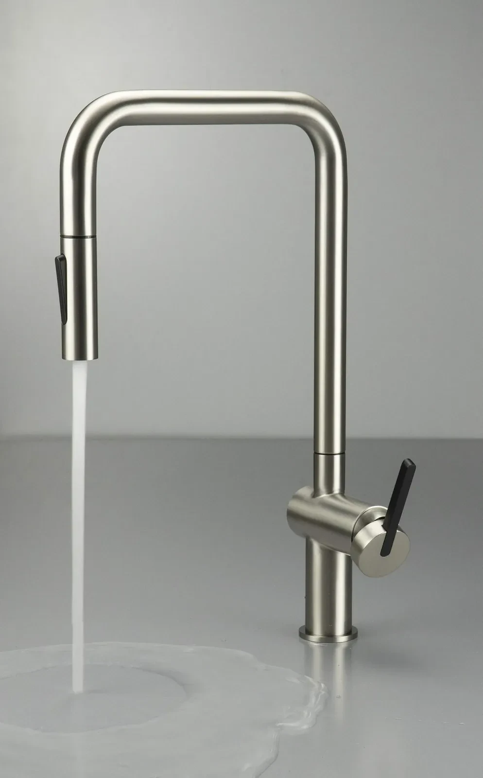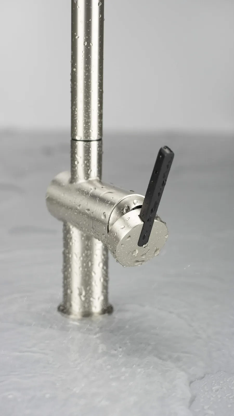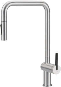 Bateria kuchenna Momi, wykonana z wysokiej jakości stali nierdzewnej, wyróżnia się elegancką, prostokątną wylewką, która nadaje jej nowoczesny wygląd. Wbudowany aerator skutecznie napowietrza strumień wody, co przekłada się na mniejsze jej zużycie. Wyciągana wylewka zapewnia komfortowe użytkowanie, umożliwiając łatwe operowanie wodą przy różnorodnych pracach w strefie zlewozmywaka. Bateria posiada dwa rodzaje strumienia: napowietrzony, idealny do codziennych zadań, oraz delikatny, deszczowy strumień, świetny do płukania warzyw i owoców. Bateria Momi, wykończona jest w kolorze stali szczotkowanej.