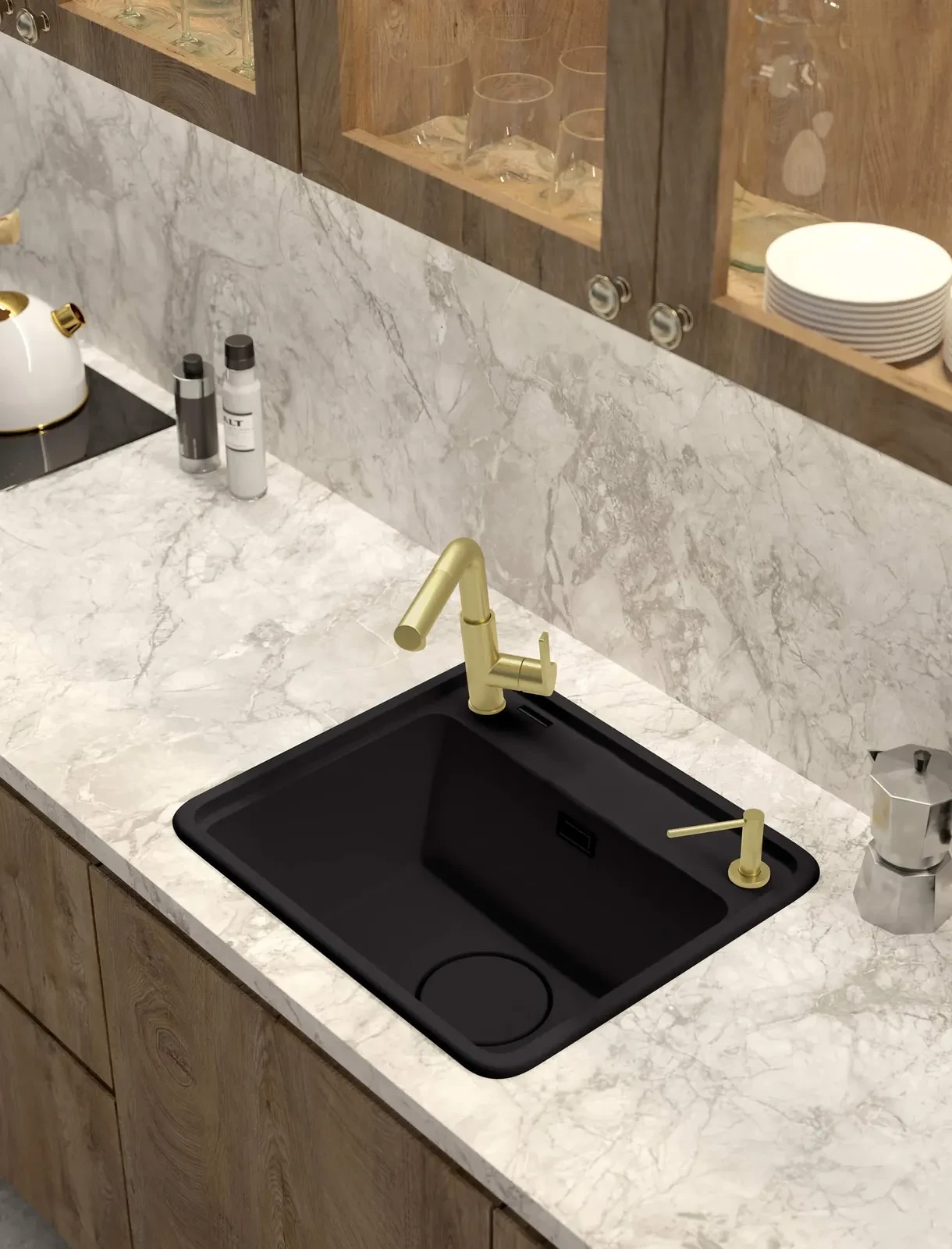 Zlewozmywak MOMI to perfekcyjne połączenie elegancji, funkcjonalności i stylu. Model ten z jedną komorą nie tylko wygląda pięknie, ale także spełnia praktyczne potrzeby w kuchni. Ważnym elementem jest elegancka maskownica z granitu, która dyskretnie ukrywa sitko. Dzięki automatycznemu korkowi Click, odpływ można łatwo otworzyć i zamknąć jednym kliknięciem. MOMI to także praktyczna stacja robocza, która umożliwia wygodne przygotowywanie posiłków, mając wszystkie niezbędne narzędzia w zasięgu ręki. Wykończony w głębokiej czerni, dodaje elegancji i wytworności.