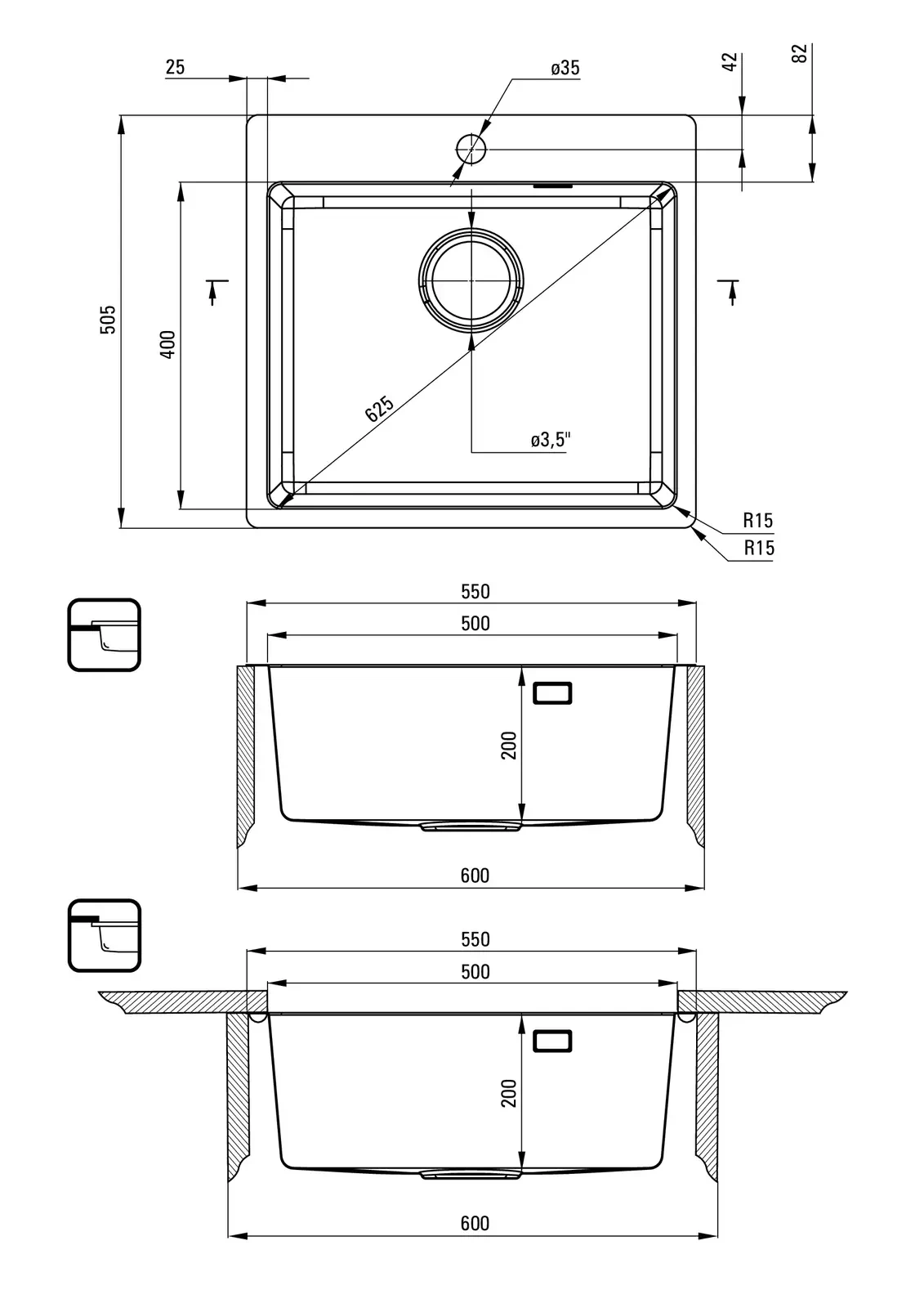 – Sposób instalacji: podblatowy, wpuszczany, na równi z blatem