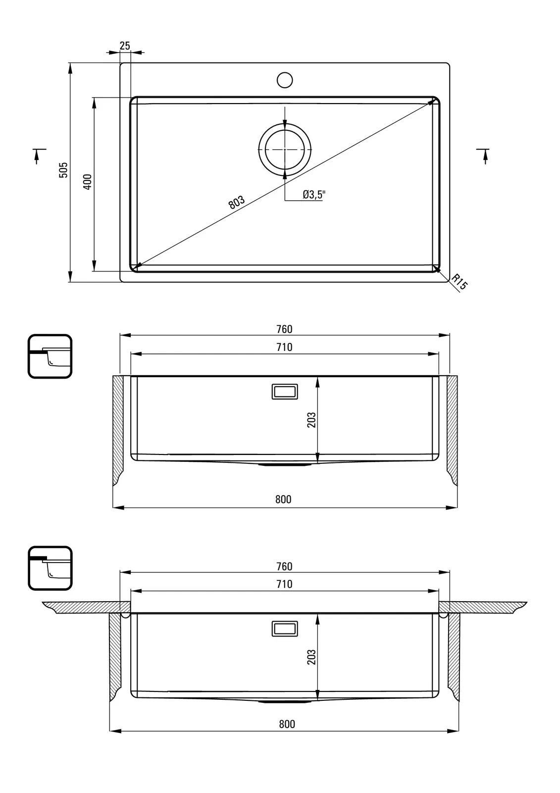 – Sposób instalacji: wpuszczany, podblatowy, na równi z blatem