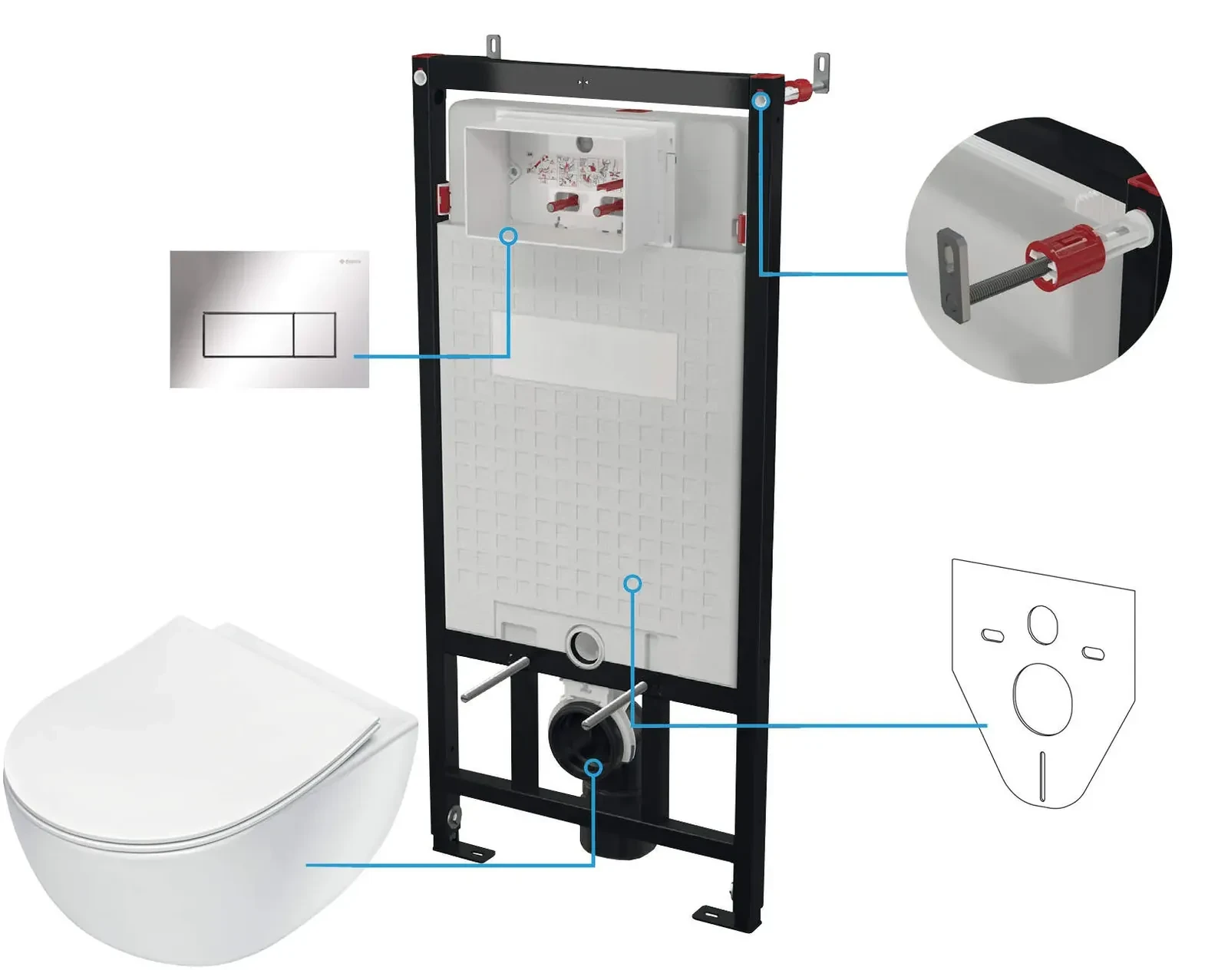 Kompletny, przeznaczony do montażu podtynkowego zestaw 6w1 z bezkołnierzową wiszącą miską wc z kolekcji Peonia Zero, pozwoli Ci w szybki i łatwy sposób zaaranżować nowoczesną i estetyczną toaletę. Ceramiczna, podwieszana miska WC z cicho opadającą, cienką deską Slim charakteryzuje się brakiem standardowego kołnierza bez trudnych do utrzymania w czystości kątów, rantów i zakamarków. Design miski nie tylko skraca czas czyszczenia toalety i ilość wykorzystywanych do tego detergentów, ale także sprawia, że do jej spłukania potrzeba mniej wody. Miskę montuje się na ścianie za pomocą znajdującego się w zestawie stelaża podtynkowego.