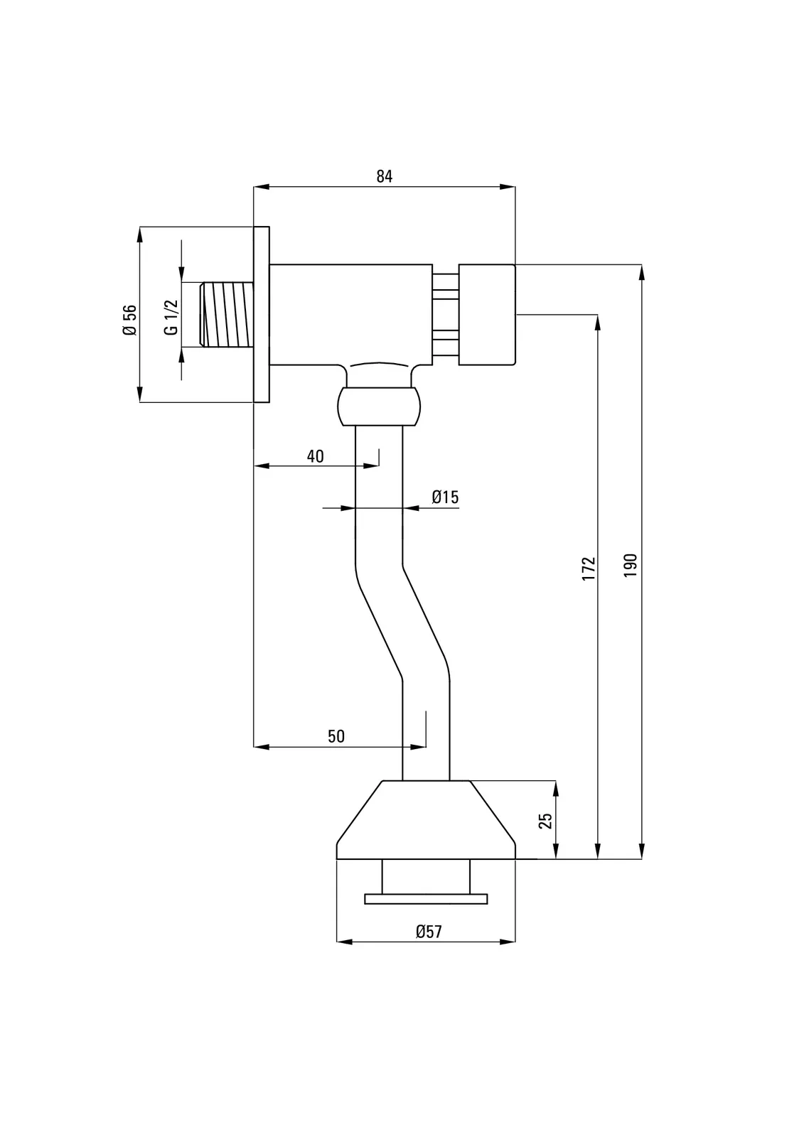 Bateria pisuarowa typu press uruchamiana przez naciśnięcie. Wyposażona w głowicę z zamknięciem czasowym. Odporna na intensywne użytkowanie w miejscach publicznych.