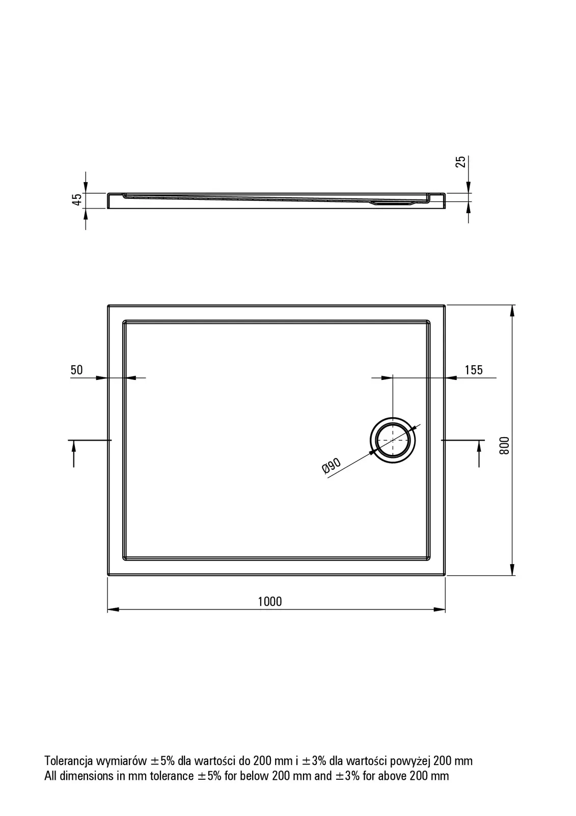 Deante Prizma Brodzik akrylowy prostokątny 100x80 cm – dane techniczne i specyfikacja