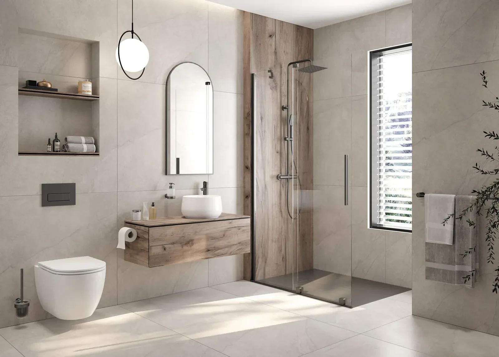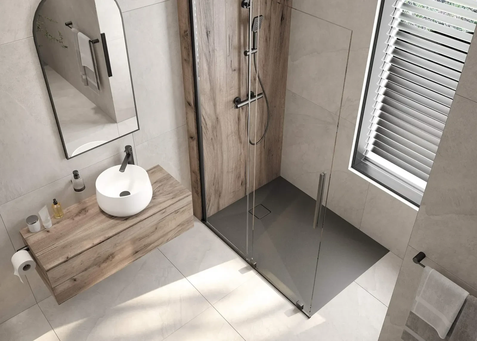 Neutralna forma wpisuje się w różne style aranżacji – od minimalistycznych po klasyczne. Wykończenie titanium podkreśla estetykę i ułatwia dopasowanie.