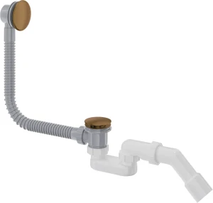 Syfon przeznaczony jest do wanien. Sito wykonane zostało z wysokiej jakości stali nierdzewnej. Jest to model z przelewem i korkiem automatycznym click-clack. Korek ma okrągły kształt i jest wykończony w brązie szczotkowanym. Doskonale pasuje do wanien PRIZMA z naszej oferty.