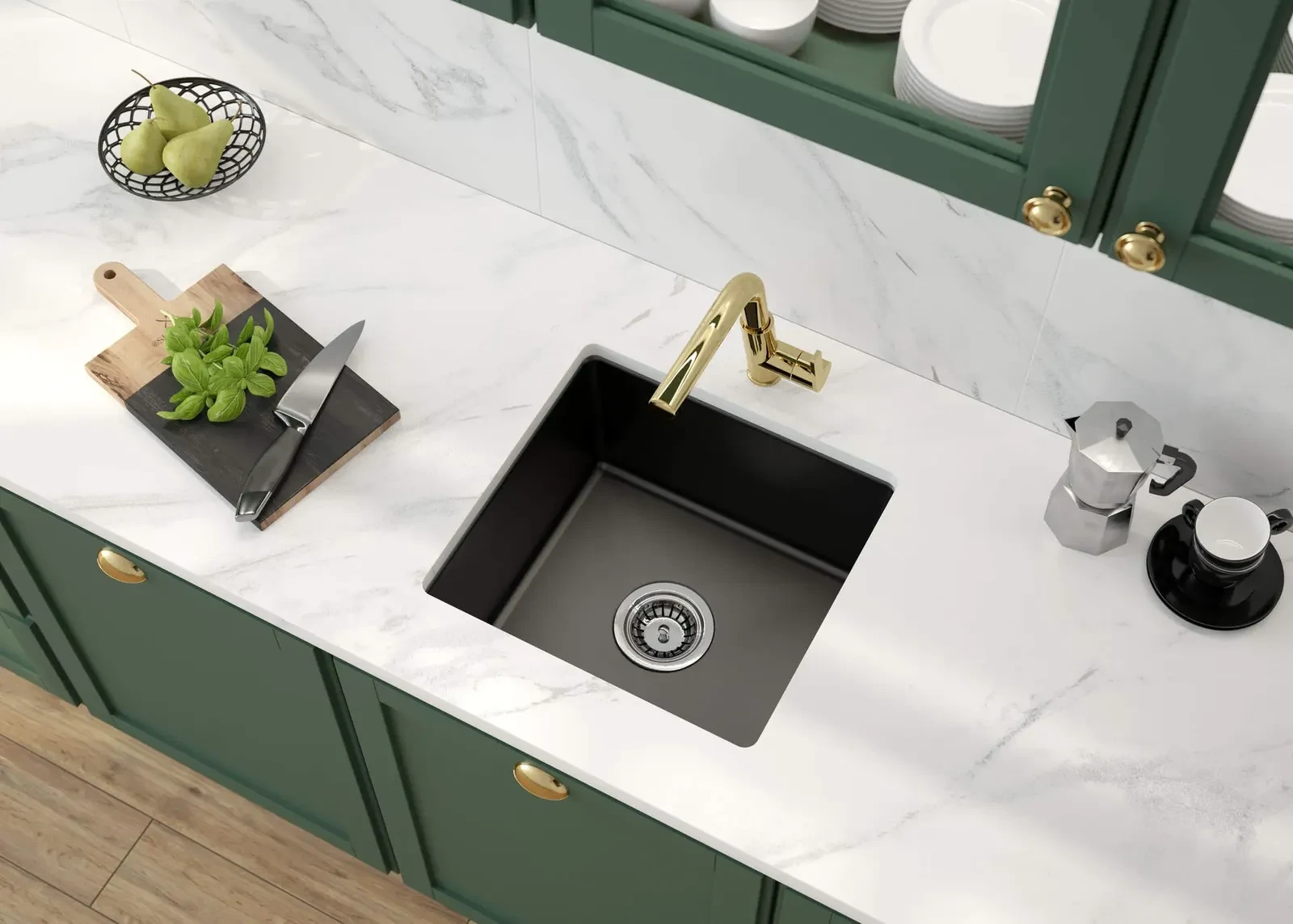 Jednokomorowy zlewozmywak Sabor wykonany jest z wysokiej jakości ceramiki. Jest to model wpuszczany bądź montowany podblatowo. Zlewozmywak jest trwały i wytrzymały, nie traci swoich właściwości nawet przy długim użytkowaniu. Eleganckie czarne wykończenie idealnie współgra z armaturą w kolorze złotym, nero czy titanium.