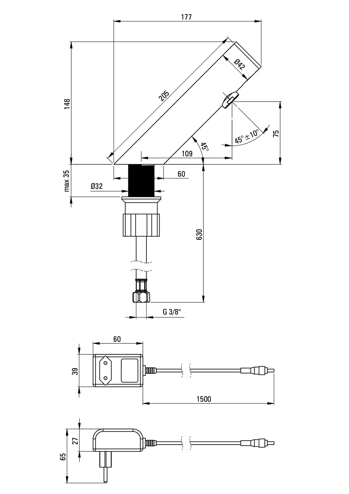 Deante Sense Bateria umywalkowa bezdotykowa bez regulacji temperatury – dane techniczne i specyfikacja