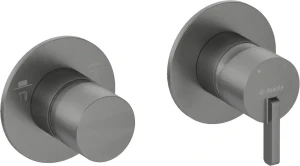Bateria prysznicowa podtynkowa w wykończeniu titanium to połączenie nowoczesności i wytrzymałości. Wykonana z mosiądzu, cechuje się długowiecznością i niezawodnością. Przełącznik funkcji Click pozwala na bezproblemowe przełączanie strumienia wody między główką prysznicową a słuchawką. Wykończenie titanium dodaje industrialnego charakteru, podkreślając nowoczesny styl łazienki. Model jest przeznaczony do montażu w poziomie.