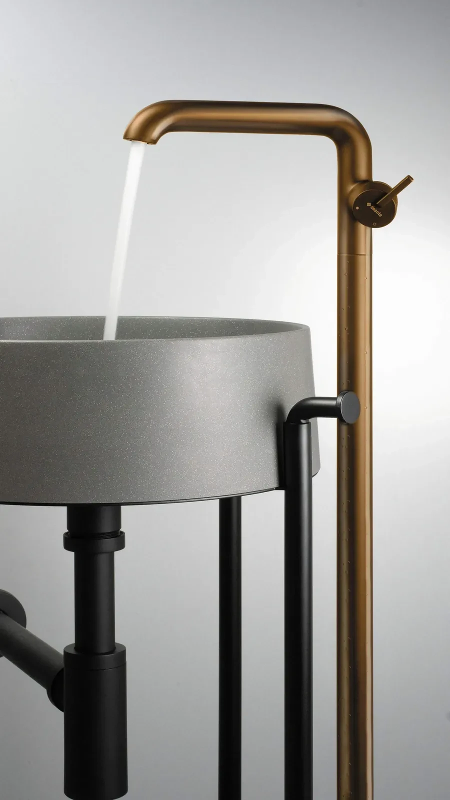Bateria SIlia w wykończeniu brąz szczotkowany dodaje ciepła i elegancji każdej łazience. Wykonana z mosiądzu i wyposażona w ruchomy aerator, bateria ta łączy nowoczesne rozwiązania z klasycznym designem. Montaż podłogowy doskonale współgra z umywalkami kolumnowymi lub konsolami łazienkowymi, podkreślając wysublimowany styl wnętrza.